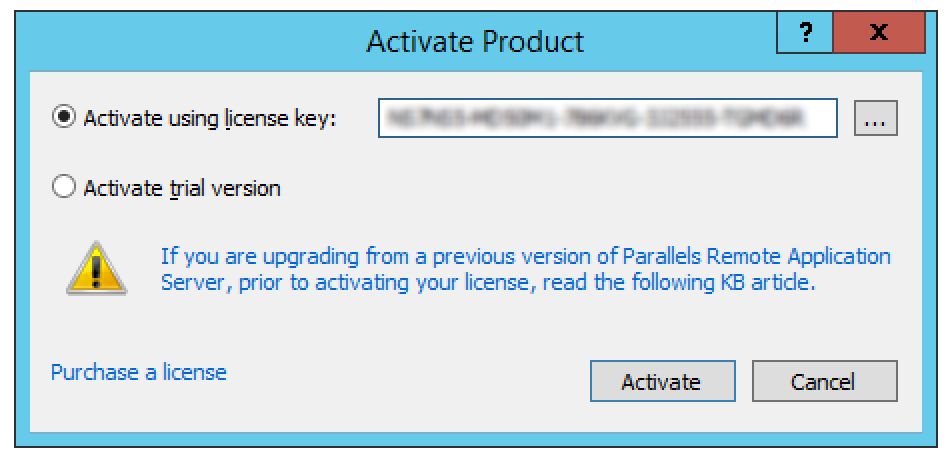 Once you have successfully activated the license, you may proceed to configure Parallels Remote Application Server.