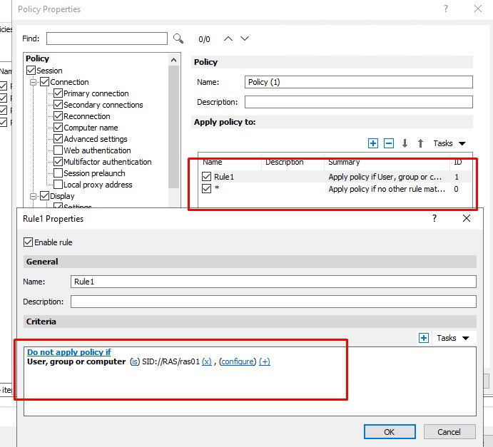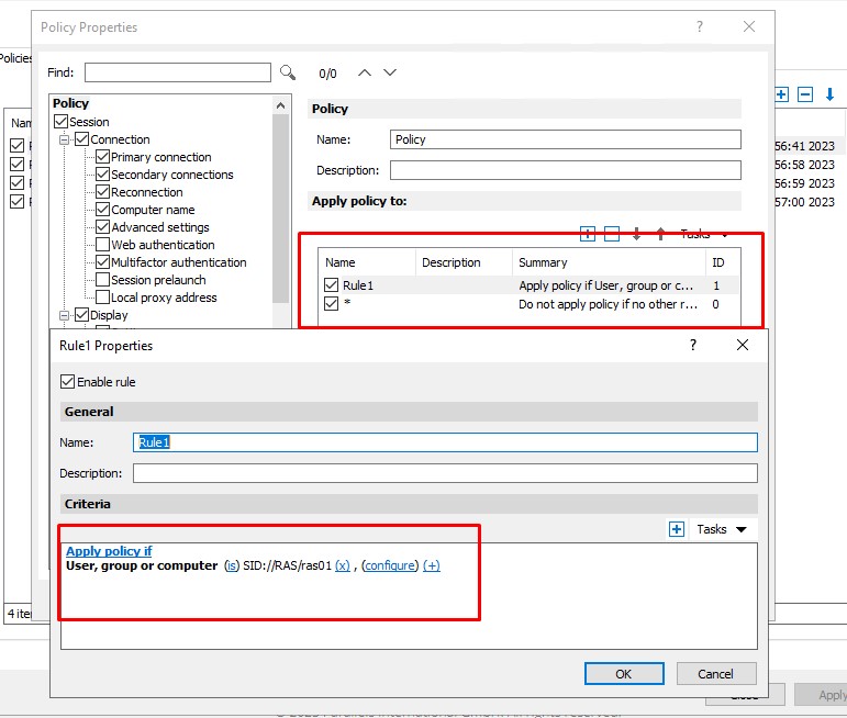 Parellels Client policies are applied in a top-to-bottom manner and only 1 policy per Client: