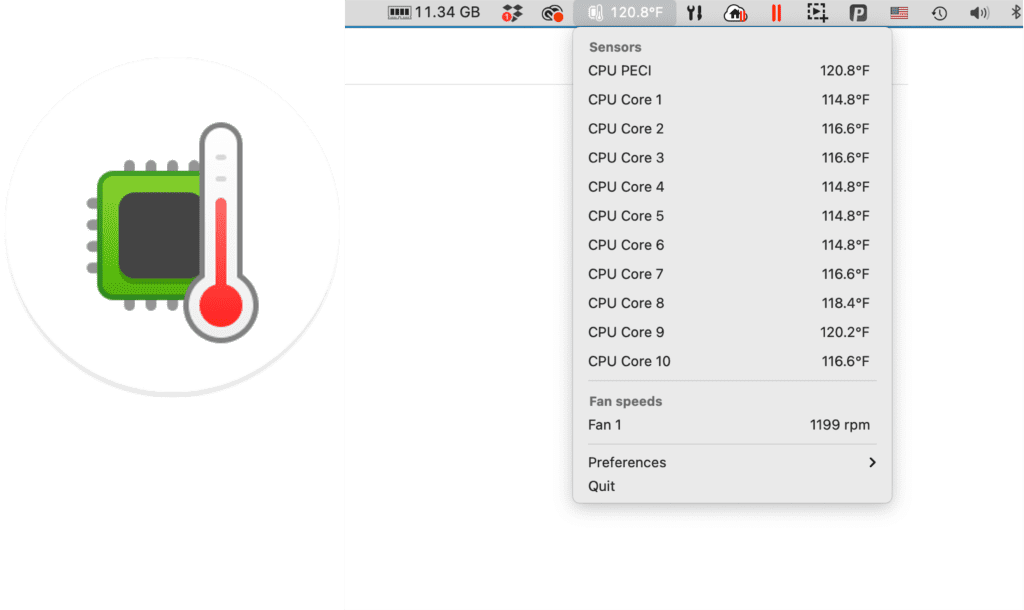 新的 Mac 工具是“CPU 温度”(图 1)。这个工具会告诉您 Mac 上每个 CPU 内核的温度,还会列出用于冷却这些内核的风扇速度。热量是电子设备“磨损”的主要原因之一,而我这样的极客希望能随时了解 Mac 的温度。看看哪些应用程序导致 CPU 温度显著升高,也是一件有趣的事情。