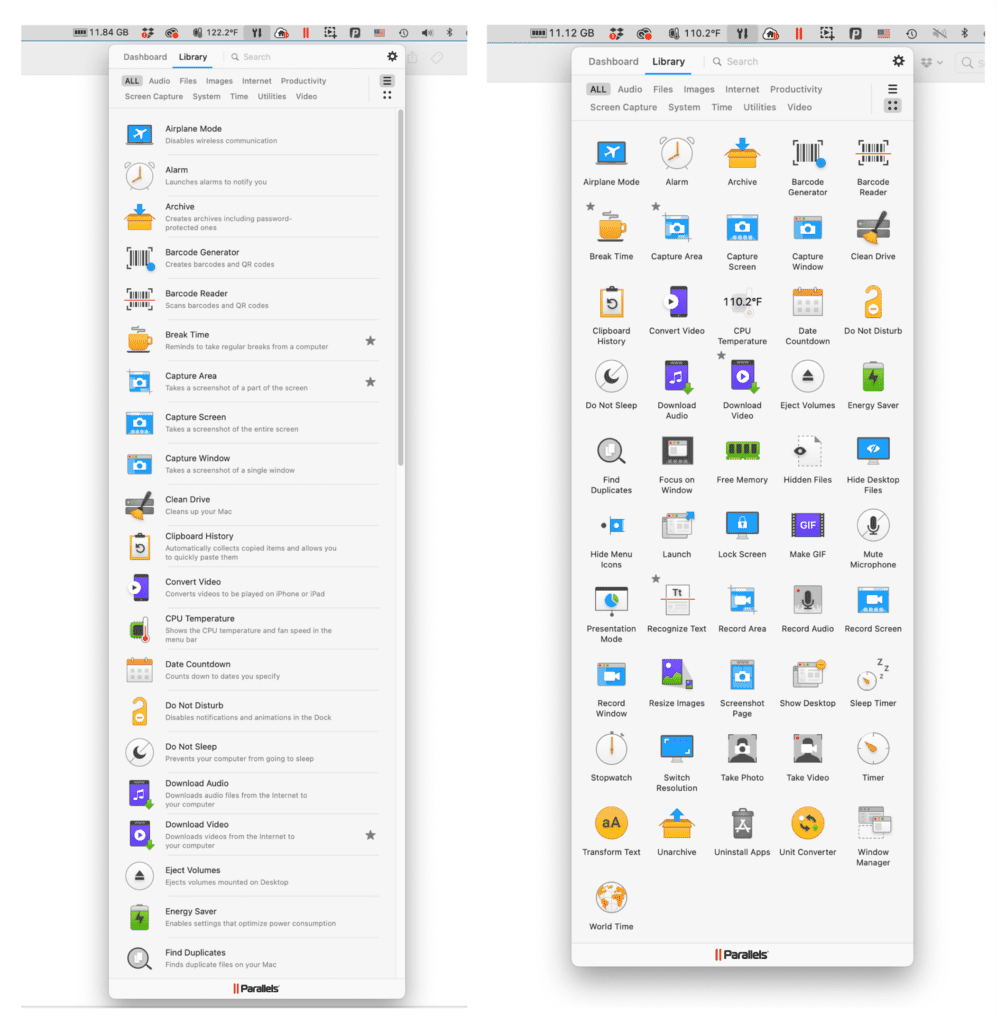 Parallels Toolbox 有两个版本:Mac 版和 Windows 版。虽然这两个版本工具有很多重叠,但并不完全相同。主要原因是,在 Mac 上好用的工具在 Windows 上不一定好用,反之亦然。