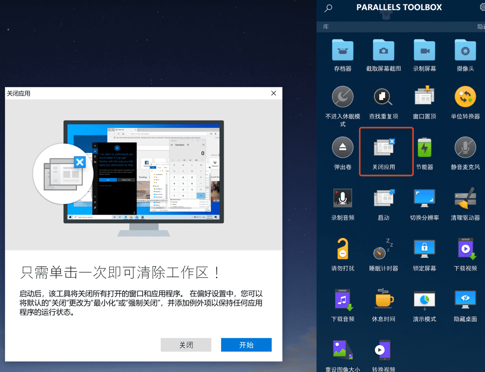 使用 Parallels Toolbox“关闭应用”在 Windows 10 中一键关闭所有打开的程序