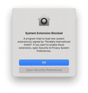 自 2017 年以来,随着 macOS High Sierra 10.13 的发布,Apple 开始自动阻止第三方 kext,用户不得不手动启用它们。那时,我们发布了这篇博客文章,向您详细介绍了使用系统扩展的 Parallels Desktop。