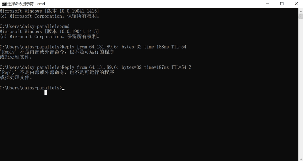 输入以下命令,尝试 ping 任何 Parallels 服务器:ping parallels.com 正常的输出如下所示: