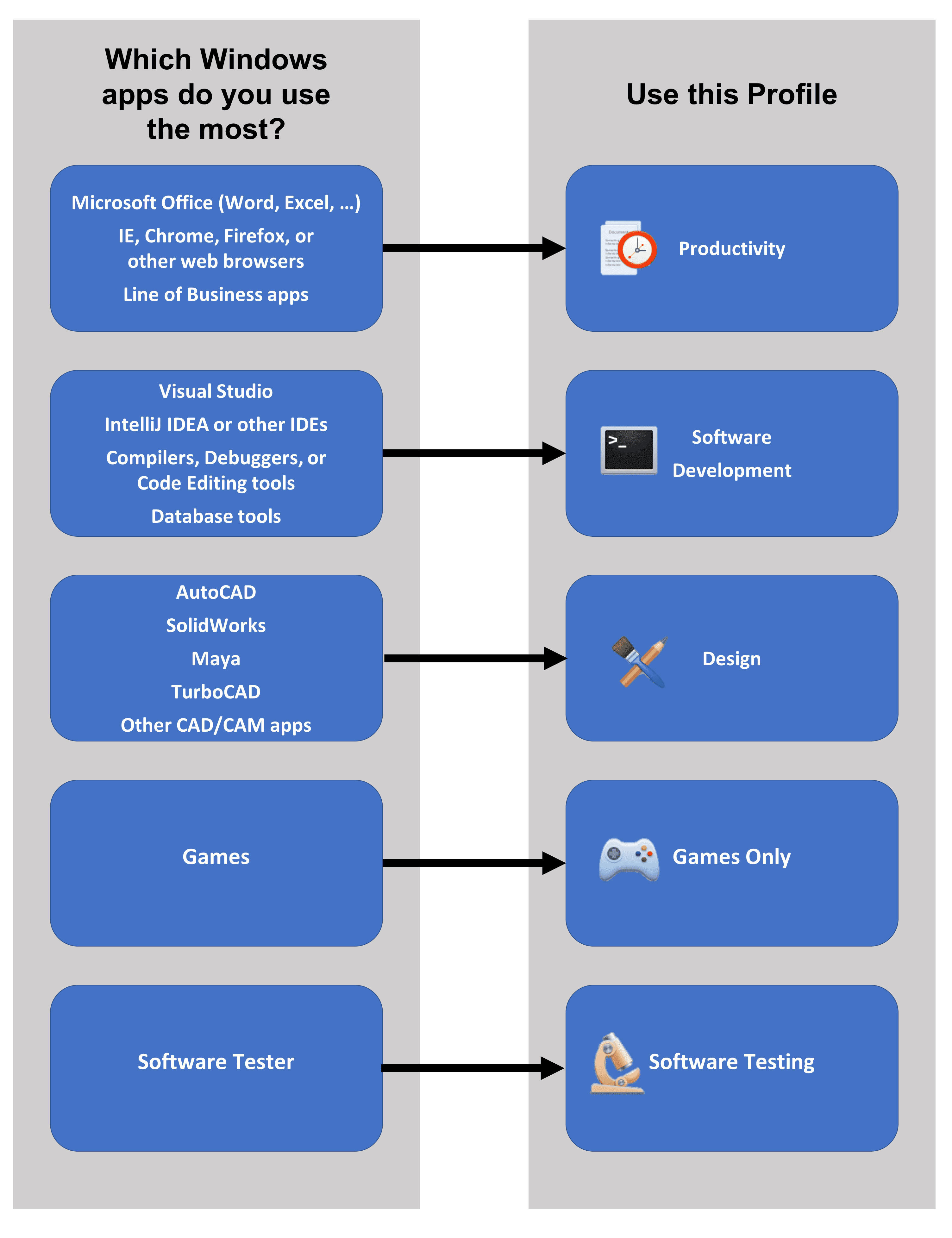 Während die Namen der Profile ausreichen könnten, um das geeignete auszuwählen, enthält Abbildung 3 ein Flussdiagramm, um euch zu unterstützen.