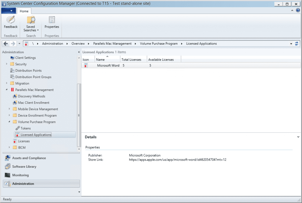 In Version 8 wird das jetzt noch besser! Jetzt können Unternehmen, die App Store-Anwendungen in großen Mengen über das Apple Volume Purchase Program (VPP) erwerben, diese Anwendungen problemlos über SCCM auf ihre Mac-Sammlung verteilen. Nach der Bereitstellung können diese Anwendungen auch über SCCM verfolgt und verwaltet werden. Durch die Nutzung der automatischen und berührungslosen Geräte- und Anwendungserfassungs-, Bereitstellungs- und Konfigurationsfunktionen von Apple DEP und VPP in Parallels Mac Management können Unternehmen die Effizienz von IT-Mitarbeitern und Benutzern wie nie zuvor steigern.