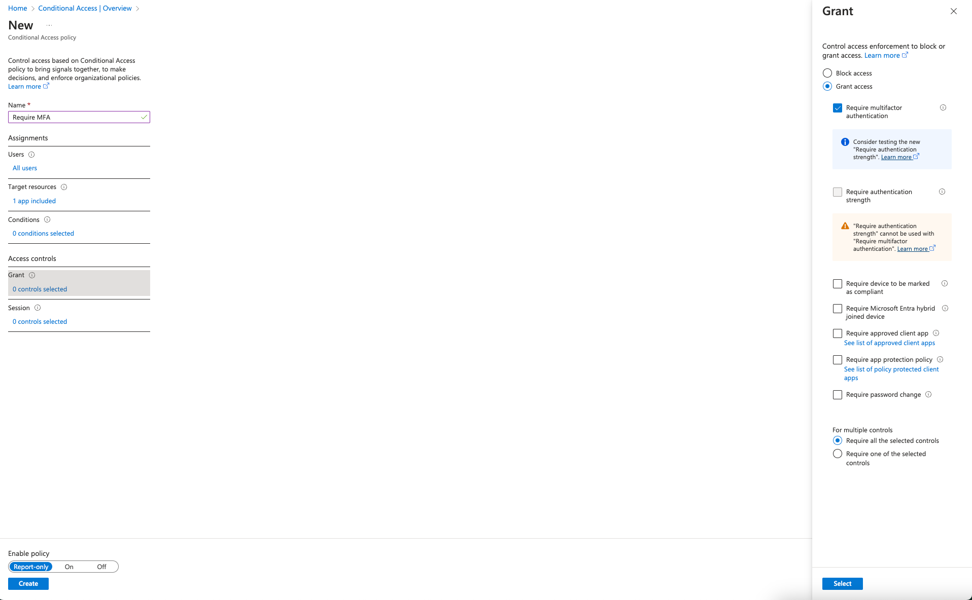 Enable the policy and click Create.