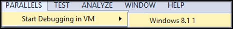 Click PARALLELS > Start Debugging in VM and select the virtual machine you need (this virtual machine must be running).