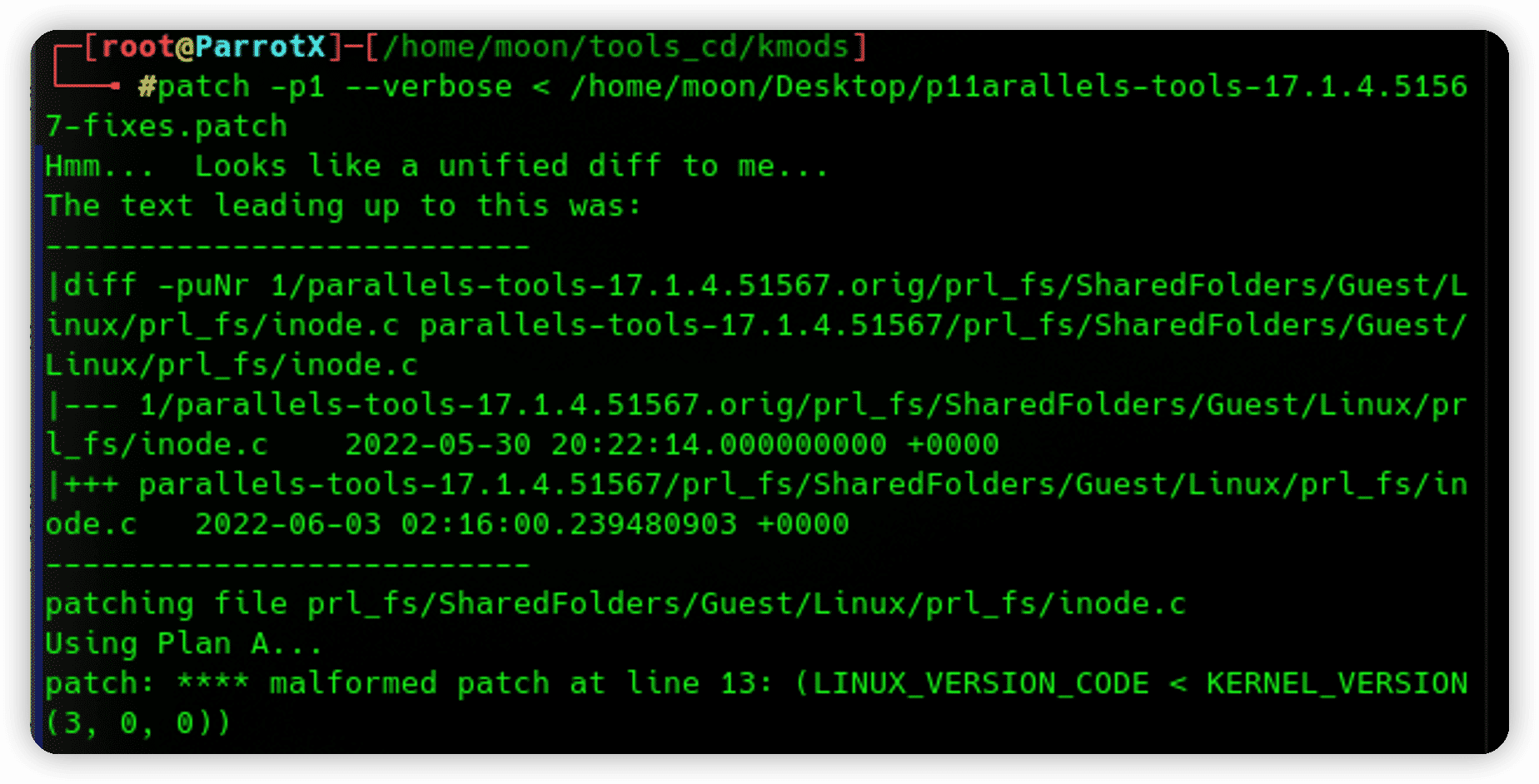 $ patch -p1 --verbose < /tmp/parallels-fix.patch