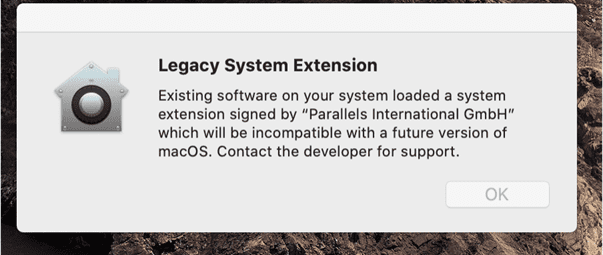 Parallels 側の技術的な作業の大半は、macOS Big Sur の基盤部分での大幅な変更に対応するために費やされました。Mac ユーザーであれば、macOS Catalina や macOS Mojave の使用中に、図 1 のようなダイアログを目にしたことがあるかもしれません。