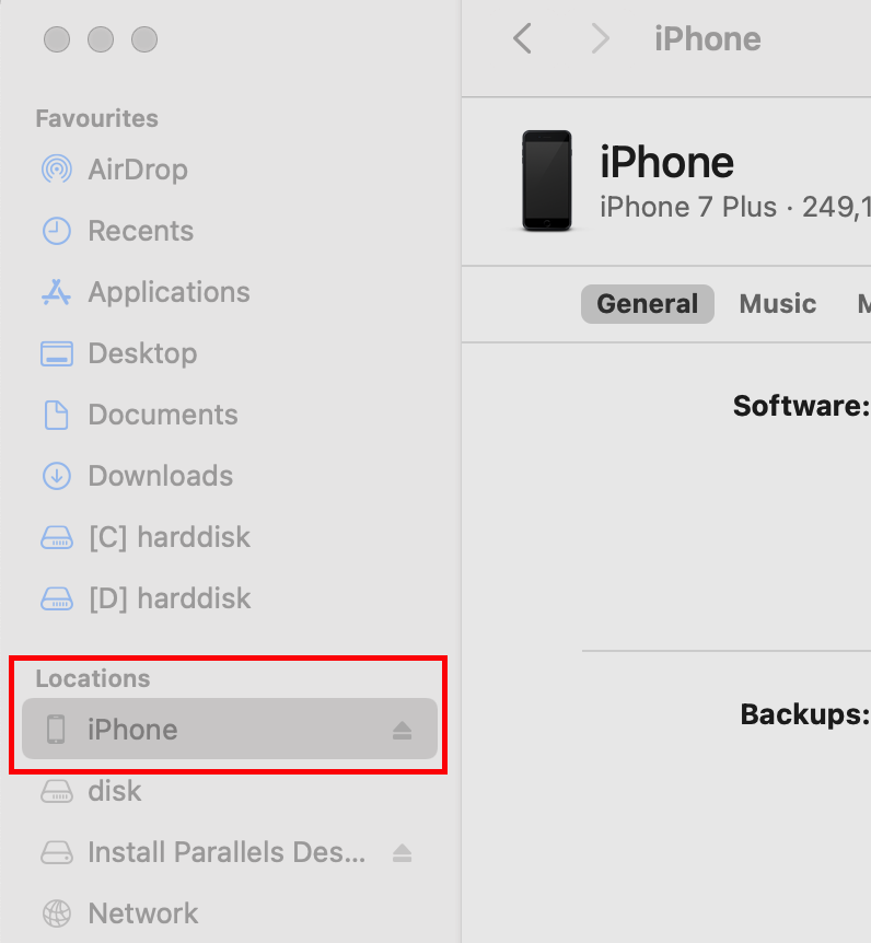 Make sure the device is detected on the Mac side, it should appear in Finder:
