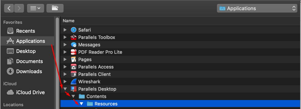In the Open window navigate to Applications > Parallels Desktop > Contents > Resources