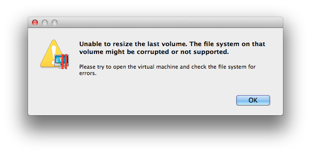 • if the warning message appears again - uncheck "Resize file system" checkbox and resize the hard disk, then go through the instructions in KB 113972.