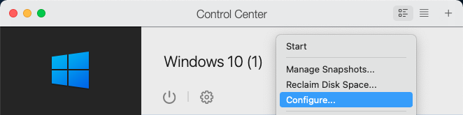 Right-click on your virtual machine and choose Configure to open its configuration.