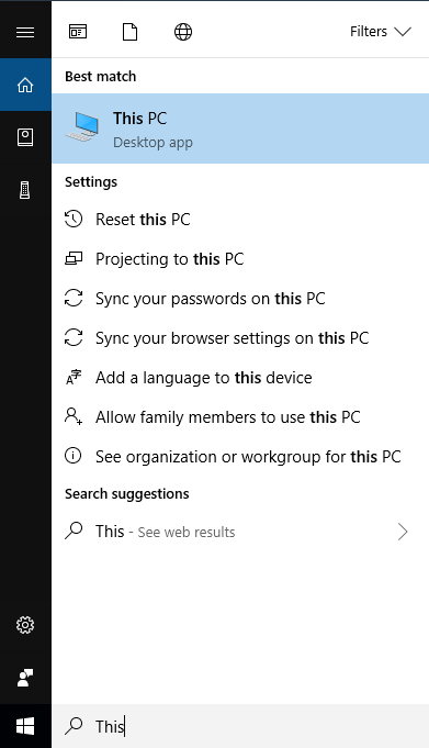 Click Start and type This/this and click on the suggested This PC Desktop app.