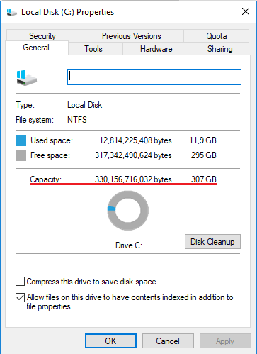 The size of the main partition (the partition where the Windows installation is located — it is local disk (C:) by default) should equal the size of the virtual hard disk (Hard Disk 1).