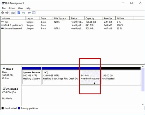 NOTE:If there is a recovery partition located between unallocated space and at the (C:) partition, please refer to this article to delete the recovery partition and expand the disk (if there is not such recovery partition, proceed to step 3).