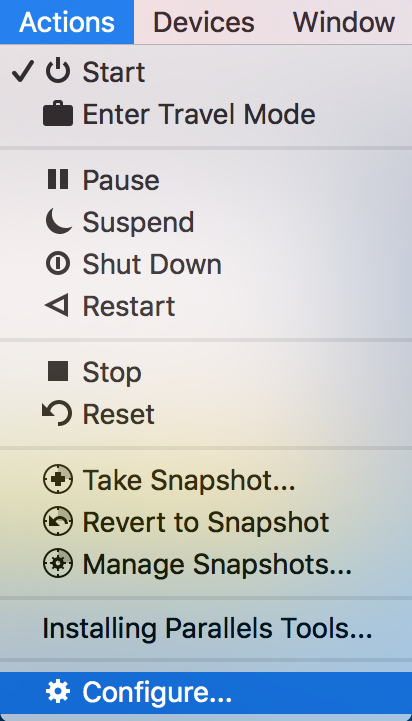 1. Click on Actions in the top menu bar > Configure...