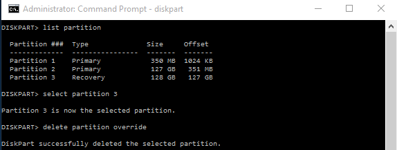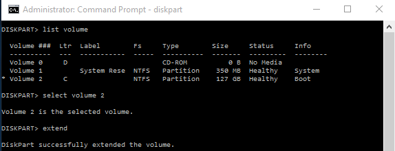 6. When the operation is finished, the following message will be displayed: DiskPart successfully extended the volume.