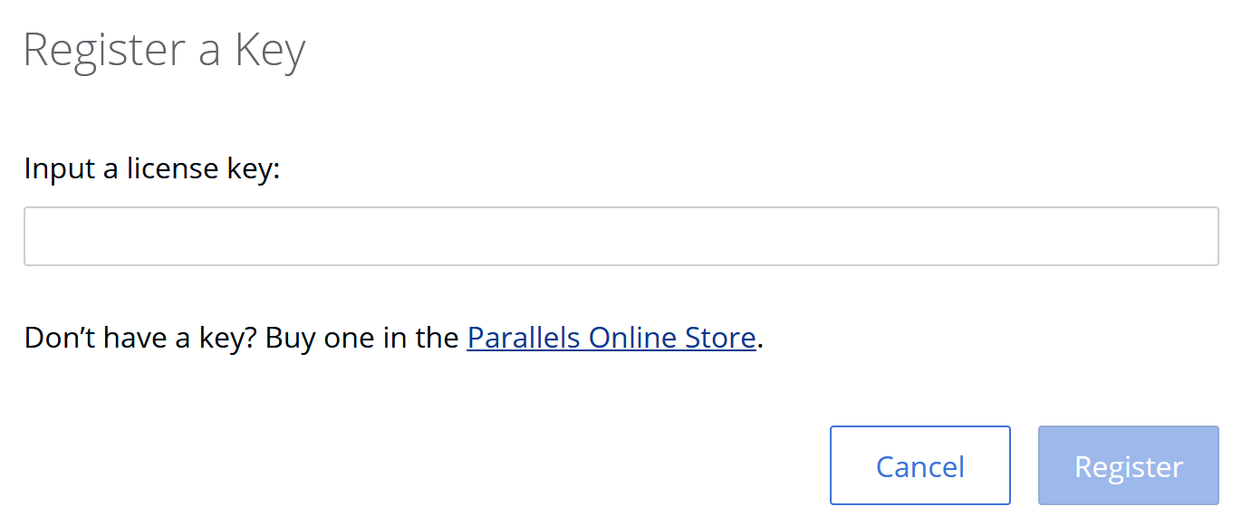 1. Create a new Parallels account or sign in to an existing one at https://my.parallels.com/, and click Register Key on your Dashboard page.