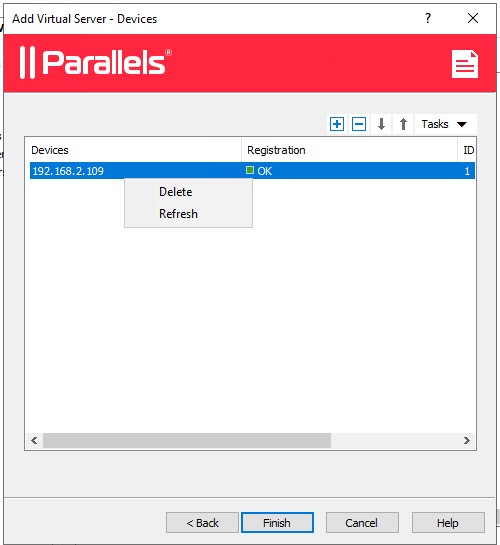 Finally, click Finish to save the Virtual Server settings and close the wizard. The new virtual server will appear in the list in the RAS Console and ready to use.