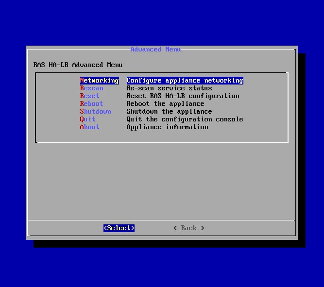 - Reset - used to reset the exsited Applicance config due to glitch or adding it to a different HALB virtual server.