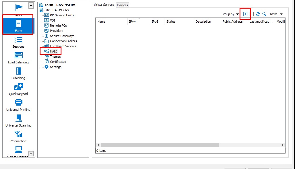 - In the RAS console, navigate to Farm > <Site> > HALB.