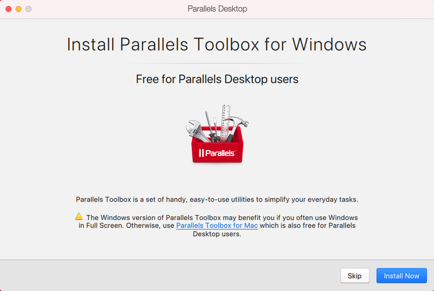 Starting from Parallels Desktop 13 for Mac users can install Parallels Toolbox for Windows right from the Parallels Desktop menu: