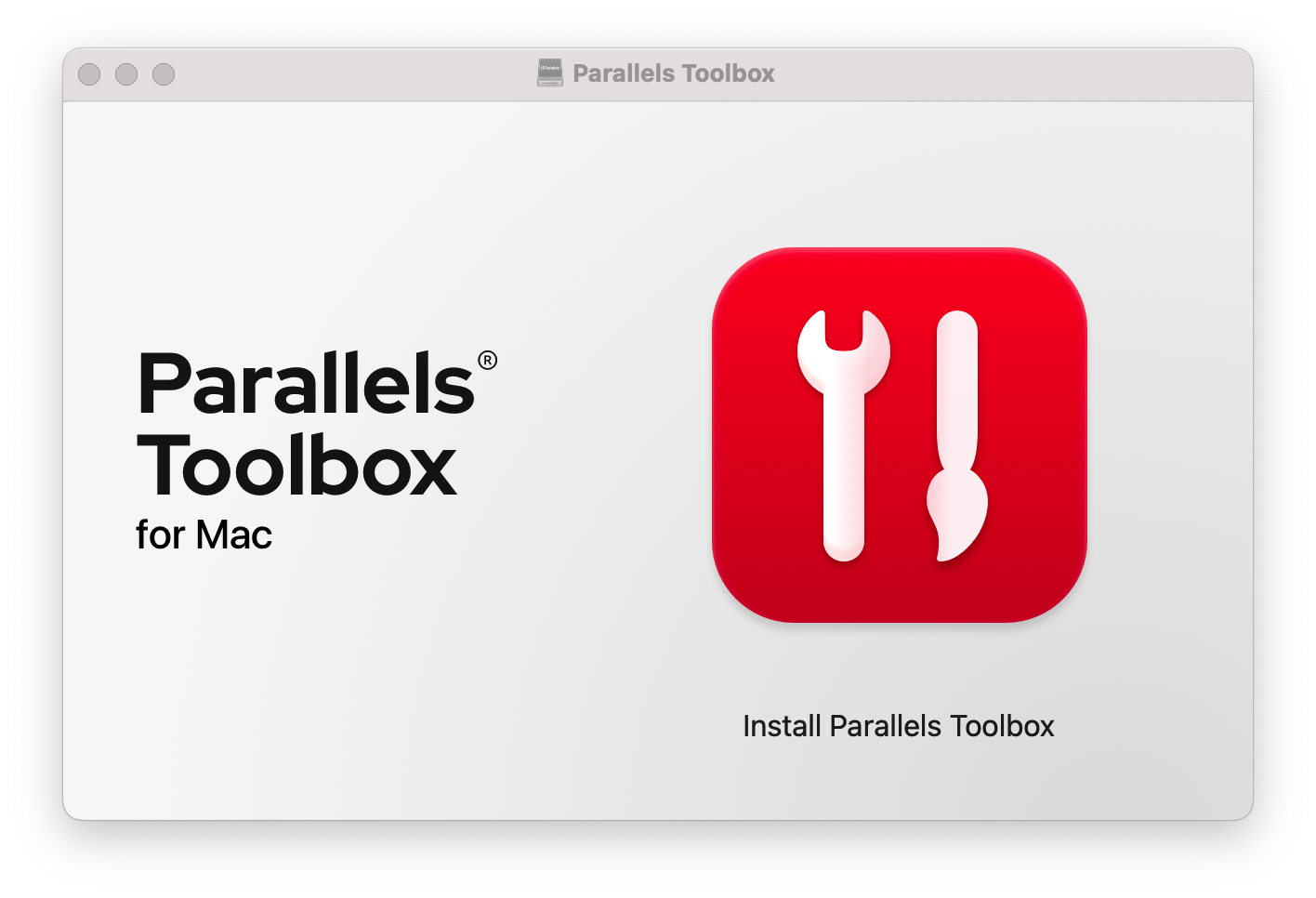 2. After accepting the Parallels End-User License Agreement you will see the Parallels Toolbox installation window. Double-click on Install Parallels Toolbox.