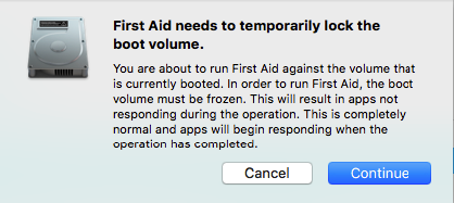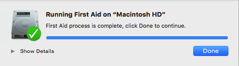 After restarting the Mac, it's required to verify and repair Mac's disk file system using Disk Utility application, because in most of the cases the root cause of the issue related to issues within the file system: