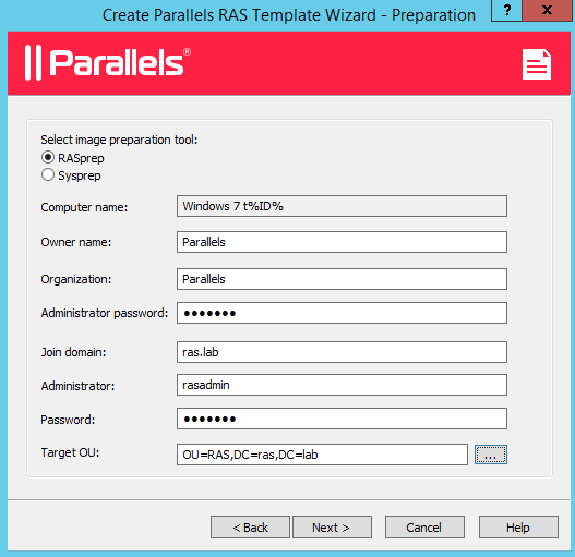4. In the opened Create Parallels RAS Template Wizard - Preparation dialog specify
