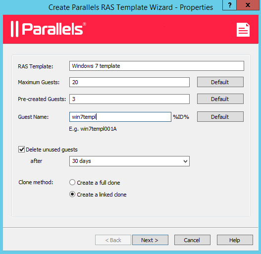 3. In the opened Create Parallels RAS Template Wizard - Properites dialog specify