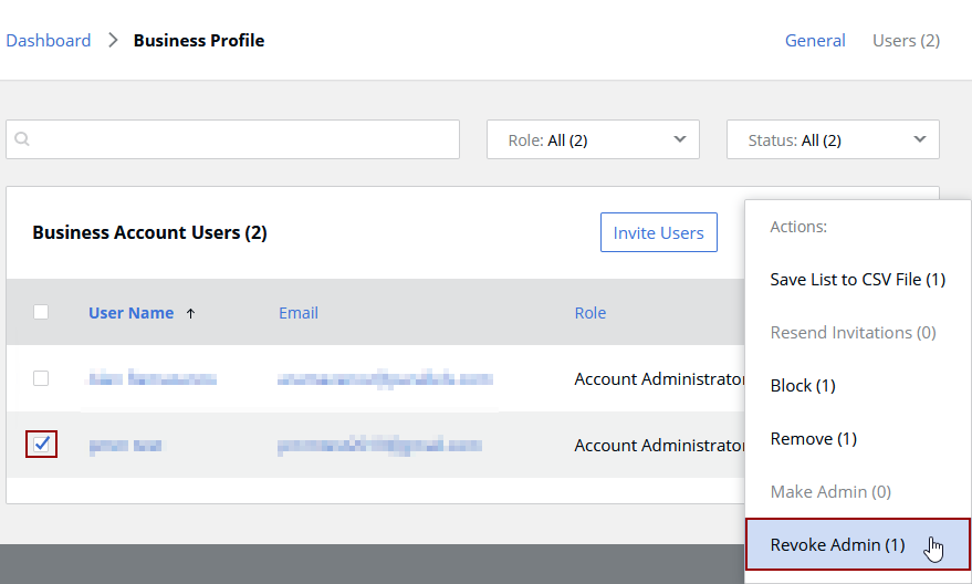 NOTE: If the member is already added with the Account Administrator role, it should be demoted to Regular Member: