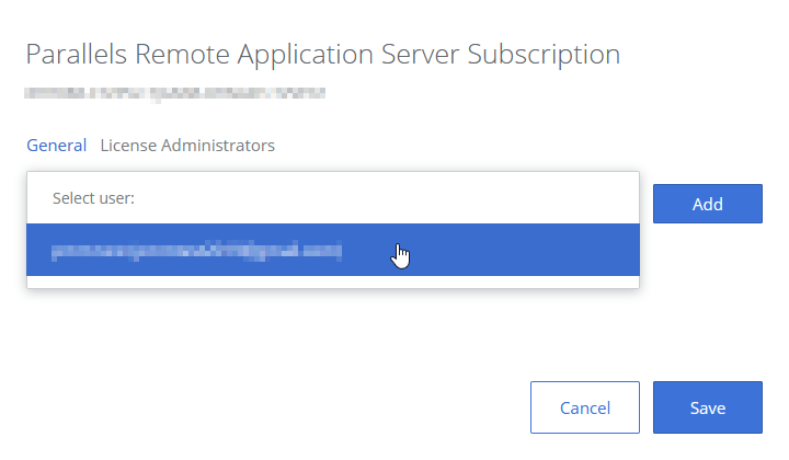 6. Select the user that should be able to manage the license: