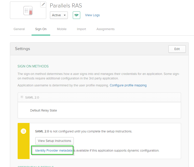 1. In RAS Console > Connection > SAML tab > open IdP Okta and switch to IdP tab.