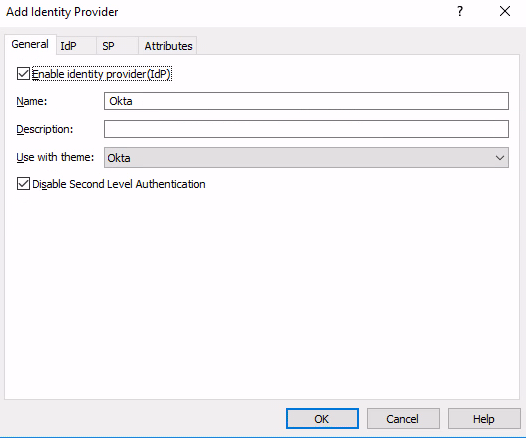 4. Switch to General and associate needful theme with this IdP. Hit Apply to coplmete the configuration.