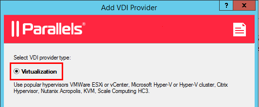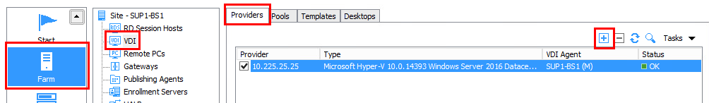 1. Go to RAS ConsoleFarm VDI Providers and click on the Plus icon: