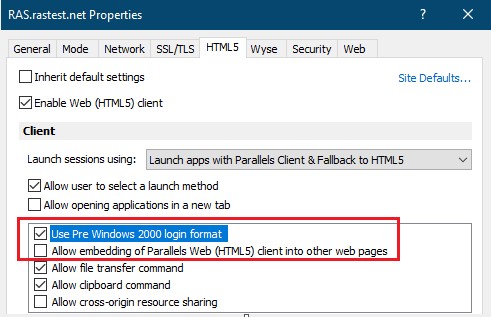 • Use Pre Windows 2000 login format: Enables legacy (pre-Windows 2000) login format.