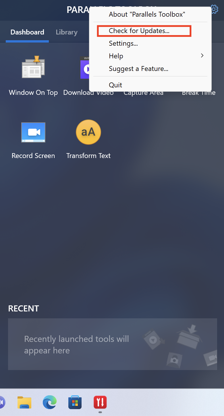 To update your Parallels Toolbox for Windows installation and benefit from the update, follow these simple steps: