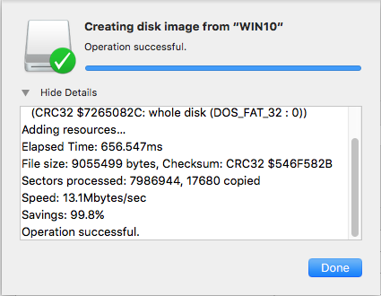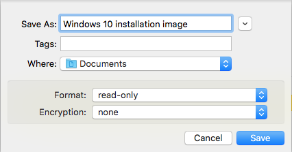 Select the source from the Disk Utility device list. Click File > New Image > Image from "Win10" (where