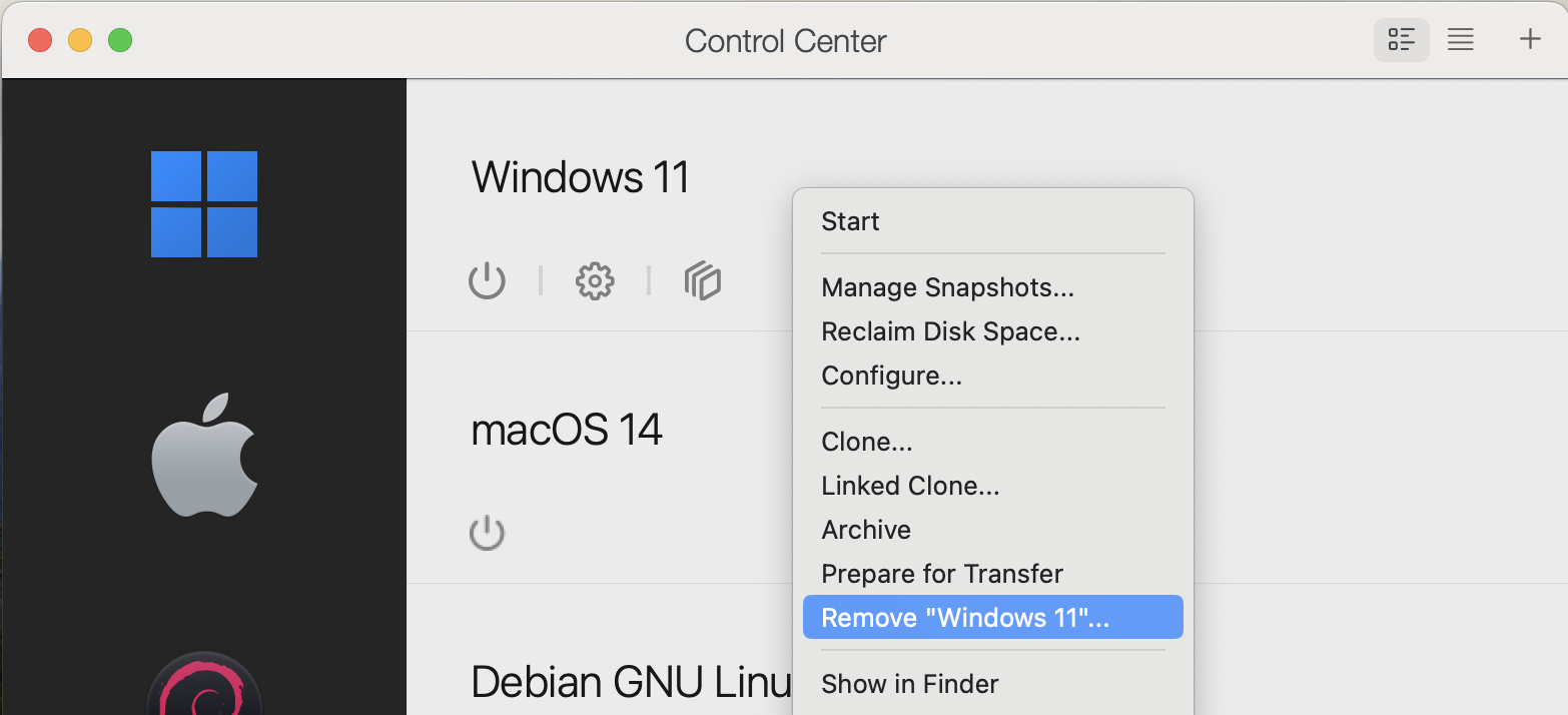 Remove a virtual machine in Parallels Desktop for Mac