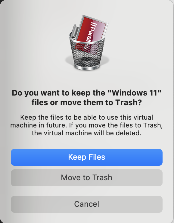 Select Move to Trash, if you do not need any data from this virtual machine and want to erase it completely.