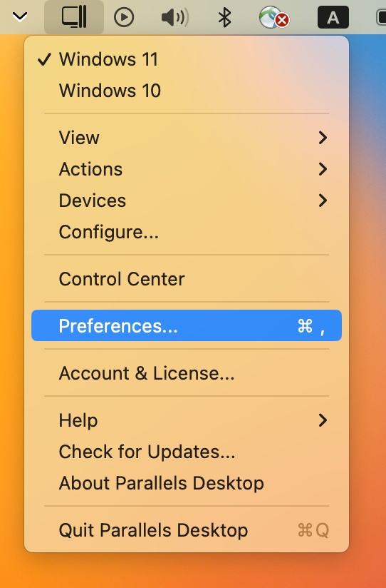 1. Click on Parallels icon on macOS menu bar > Preferences...