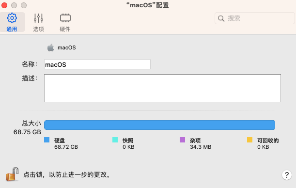 注意:macOS Arm VM 的默认磁盘大小为 60 GB。可在 Parallels Desktop 18 及以上版本的手动安装过程中设置为不同值,也可在 Parallels Desktop 19 中使用配置界面或命令行选项调整大小。