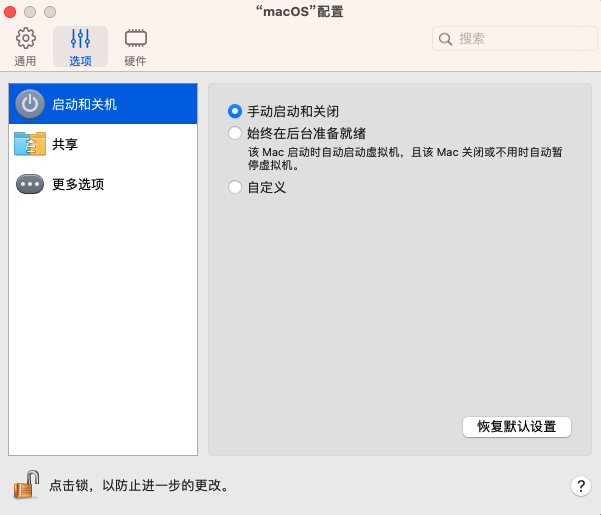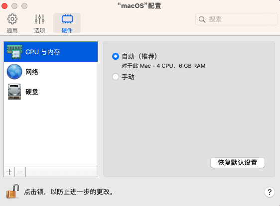 对于在装有 Apple 芯片的 Mac 电脑上运行的 macOS 虚拟机,可以调整以下设置: