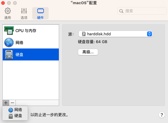 1. macOS 虚拟机只支持普通磁盘类型。它会占用虚拟磁盘所设置的空间,这与扩展磁盘不同。