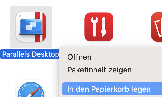 Deinstallieren von Parallels Desktop für Mac