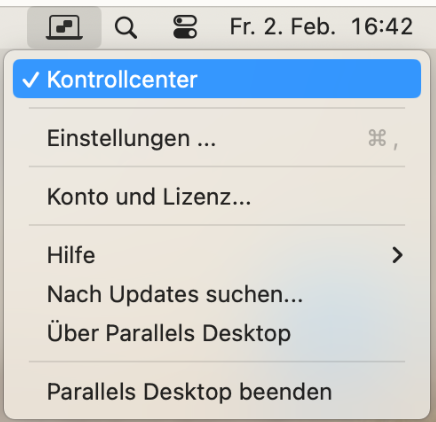 1. Klicken Sie in der oberen Menüleiste auf das Parallels Desktop-Symbol > Kontrollzentrum .