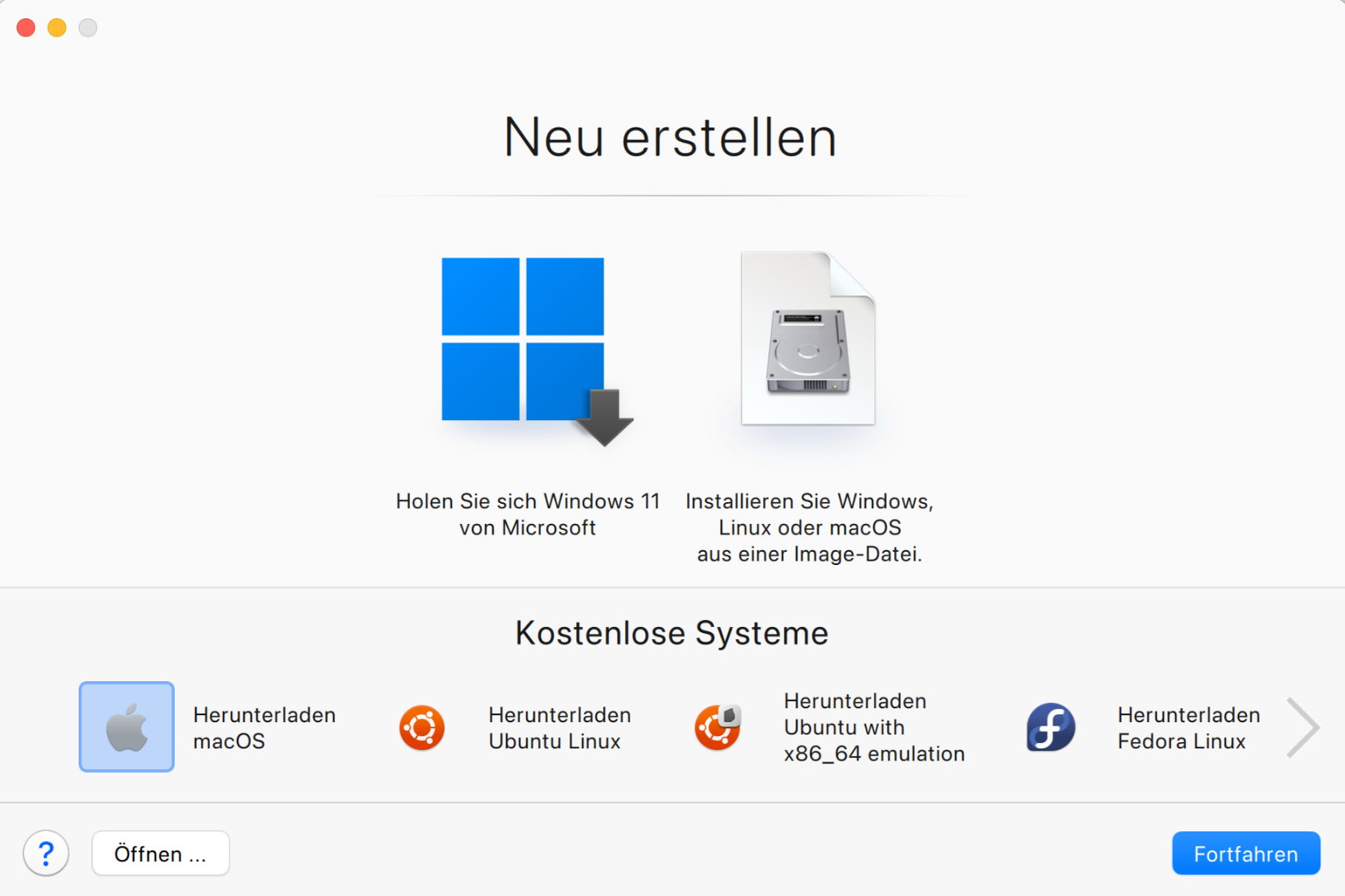 Um eine macOS-VM zu installieren, starten Sie Parallels Desktop und führen Sie die folgenden Schritte aus: