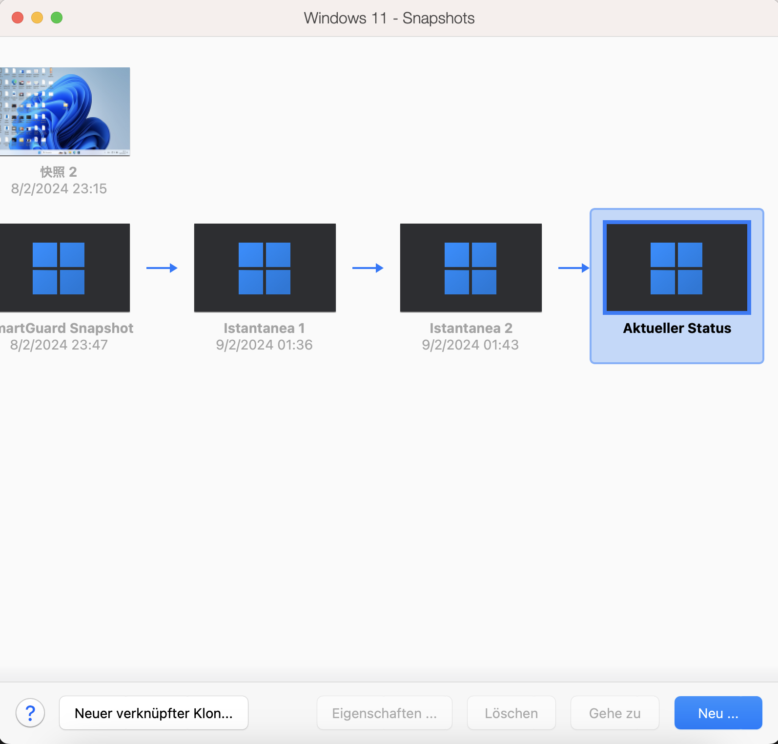 Hinweis: Snapshots werden derzeit nicht für virtuelle Maschinen unter macOS unterstützt, die auf Apple-Silicon-Mac-Computern ausgeführt werden.
