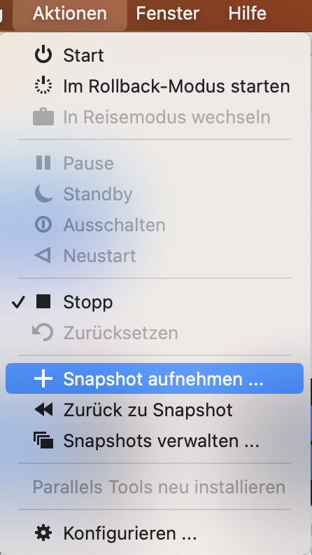 - Starten Sie Parallels Desktop und die virtuelle Maschine, in der Sie den Snapshot erstellen möchten.